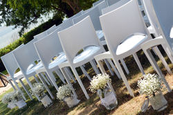 Pour le grand jour de Sophie et Jérôme, qui s'est déroulé au Domaine des Moures, notre équipe s'est chargé de la décoration florale et de l'organisation du Jour J. Les mariés se sont dit oui lors d'une émouvante cérémonie religieuse en extérieur que j'ai décoré avec mon arche, des petits bouquets de gypso, une composition pour l'autel à la Vierge dans une de mes caisses anciennes, du gypso dans des bocaux Le Parfait avec de la dentelle, des paniers de pétales de roses... Nous avons aussi réalisé le Photobooth, la décoration de la Table d'accueil, le Plan de tables,... Les centres de tables dans mes beaux Vases Médicis. La papeterie a été réalisée par les Petits Trésors de Julie.